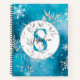 Carnet Puce de Noël en argent bleu étincelant Monogramme