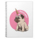Image par Afishka | Shutterstock. Identification d'image : carlin beige pipe% adorable de chiot de 1170091624 % dans un casquette de partie de crème glacée sur un arrière - plan rose. Pugicorn - citation de lettrage.