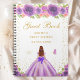 Cet élégant et glamour livre d'hôtes en sweet sixteen présente une belle princesse aux cheveux roux bruns et à la peau claire dans une robe violette. Le texte combine écriture manuscrite et polices sans serif modernes pour un look élégant et sophistiqué. Les compositions florales, les papillons et les confettis d'or créent un mélange parfait de rustique et de chic. Graphiques par www.etsy.com/uk/shop/SunflowerDayLove