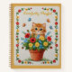 Brighten your day with the "Purrfectly Playful" journal, featuring a heartwarming faux-embroidery illustration of a wide-eyed ginger kitten nestled inside a rustic terracotta flower pot. Surrounded by a vibrant bouquet of red poppies, yellow daisies, and blue wildflowers, the kitten is joined by a flutter of colorful butterflies. The design is framed by a delicate floral vine border on a clean linen-textured background, offering a high-definition needlepoint look that feels warm and inviting.