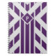 Notez vos notes dans un carnet élégant avec un motif géométrique violet et gris. Les quadrangles et rayures violettes pointent vers un diamant violet dans le tiers supérieur de la couverture qui contient un monogramme personnalisable. L'arrière - plan est gris clair. numériquement créé une image. Copyright © 2016 Claire E. Skinner. Tous droits réservés.