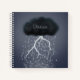 Un nuage de tonnerre foncé géant souffle la pluie et la foudre illuminant un bassin d'eau ondulante. Customisez le nuage avec un nom ou un titre pour votre carnet.