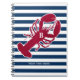 Un homard rouge avec votre monogramme ou texte a placé sur un arrière - plan rayé de bleu marine et blanc. Une conception parfaite pour une plage ou une maison d'été par l'océan, homard font cuire au four sur le rivage, les réunions ou juste la vie quotidienne. Cliquez sur dessus le logo de Colorfulgalshop ci-dessous pour plus de conceptions nautiques d'amusement.