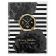 Carnet Rayures modernes florales noires élégantes de