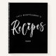 Charmant livre de recettes en noir. Personnalisez avec votre nom et l'année. Recettes est écrit dans un script de brosse noire avec un coeur griffé remplaçant le point sur l'i.