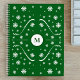 Un Carnet de recettes avec motif Flower Power blanc, une lettre monogramme vert foncé et des ornements floraux dans les tons vert émeraude pour vos préparations maison! Changez le papier intérieur pour un carnet d'école ou de bureau !