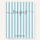 Joli carnet de recettes avec thème rayures vintages en bleu clair et blanc. Personnaliser avec le nom comme un cadeau pour elle ou un cadeau pour lui