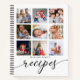 Le livre de recettes de collage photo moderne et élégant comprend 8 photos de la famille, le script de typographie "recettes" en lettres tendance et nom de famille.