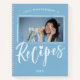Cahier de recettes photo, parfait pour les douches de mariée. Dans un charmant design bleu poudre et blanc, les recettes sont écrites en écriture manuscrite sous une photo de votre choix. Un cœur ponctue le i. Votre photo s'insère dans un cadre de lignes blanches dessinées. Ajoutez le nom et l'année en lettres modernes.