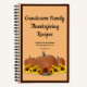 Recueillir les recettes de Thanksgiving de la famille dans ce carnet. Customisez avec votre propre nom de famille. La citation, "La gratitude est la plus belle fleur qui vient de l'âme", par Henry Ward Beecher est écrite en cursive au centre de la couverture. Trois citrouilles et plusieurs tournesols décorent la partie inférieure de la couverture orange.
