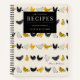 Carnet de recettes familiales moderne avec une simple illustration de poulets dans les tons jaune, blanc et noir. Le côté arrière est personnalisable avec votre photo de famille préférée ou la photo de la recette signature.