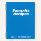 Enregistrez toutes vos recettes préférées dans ce journal de recettes élégant et simple avec une couverture minimaliste moderne en bleu vif, personnalisée avec votre nom. Super idée cadeau !