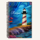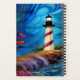 Beau phare rayé rouge et blanc sur une rocheuse surélevée entourée de fleurs et bleu eau/ciel IA Art créé par minx267