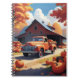 Automne Citrouille Harvest avec Camion Pickup, feuilles d'automne et citrouilles partout.