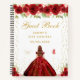 Ce livre d'or élégant et glamour présente une belle princesse aux cheveux roux bruns et à la peau claire dans une robe de bal rouge. Le texte combine écriture manuscrite et polices sans serif modernes pour un look élégant et sophistiqué. Les compositions florales, les papillons et les confettis d'or créent un mélange parfait de rustique et de chic. Graphiques par www.etsy.com/uk/shop/SunflowerDayLove