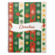 Carnet de vacances festif avec des rayures rouges et vertes avec pin aquarelle, baies, accents floraux, ornements, étoiles et flocons de neige. Un design charmant, parfait pour la journalisation, la planification ou les cadeaux saisonniers en hiver et en automne.