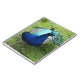 A vibrant peacock, its iridescent plumage partially displayed, stands proudly on a lush green lawn, creating a serene and captivating scene. The majestic peacock's body is predominantly a deep, rich blue, contrasting sharply with the iridescent greens, blues, and browns of its partially displayed tail feathers. These feathers are large and expansive, fanning out behind the peacock's body, but not fully spread in a full "train". The individual "eyes" on the tail feathers are visible, adding to the overall splendour of the bird. Its head is adorned with a small crest of feathers.