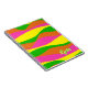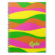 Ce carnet affiche un design des années 1970 et dispose d'une palette de couleurs époustouflante. Les couleurs dominantes sont le rose vif, le jaune, le vert et l'orange. Le design présente des rayures ondulées abstraites qui ajoutent un mouvement tactile à l'esthétique globale. Ces bandes sont un clin d'oeil aux tendances artistiques des années 1970. Pour rendre ce carnet vraiment unique, il y a aussi la possibilité de personnaliser avec votre nom.