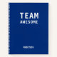 Funny Team Personalized Notes Office Meeting Carnet présente le texte "Team Awesome" avec votre nom personnalisé ci-dessous sur un arrière - plan bleu. Personnalisez en modifiant le texte dans la zone de texte fournie. Conçu pour vous par ©Evco Studio www.zazzle.com/store/evcostudio