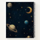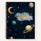 Une composition cosmique de planètes, une lune en croissant et des étoiles d'or, montrant un message stimulant qui encourage l'ambition, la persévérance et l'humilité au milieu d'un ciel nocturne onirique.