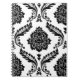 A vintage style decorative damask surface pattern influenced by rococo classical design in black detail on a white background.