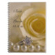 Créez un livre d'or ou un livre de conseils unique pour les jeunes mariés lorsque vous personnalisez le joli Carnet Spiral Mariage Rose, Anneau et Perles blanc avec les noms de la mariée et du marié et leur date de cérémonie de mariage. Cet élégant livre de notes nuptiales à fleurs customisées présente une photographie florale d'une fleur de rose blanche, collier de perles blanches et anneau de fiançailles de diamant.