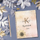 Un arrière - plan rustique à l'or rose et rose à l'aspect métallique décoré de faux or et de poussière de parties scintillant argentée et d'un tournesol rustique aquarellé. Personnalisez et ajoutez une année, un nom, un monogramme initial et un titre. Le nom est écrit en noir avec un script de style moderne écrit à la main.