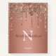 Profitez de cette élégante conception de carnet de croquis avec votre nom et monogramme ou initial avec parties scintillant en cuivre rose chic et brillant goutte sur un arrière - plan rose en feuille d'or.