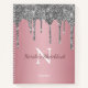Profitez de cette élégante conception de carnet de croquis avec votre texte et monogramme ou initial avec parties scintillant argent chic et brillant gouttes sur un arrière - plan rose de papier doré rose.