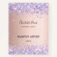 Un fond métallisé rose gold avec des confettis violets. Personnalisez avec votre nom, titre ou texte et une année. La signature est écrite avec un style de lettrage moderne à la main.