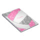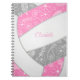 Ce joli carnet à thème volleyball présente l'image réaliste d'un volleyball abstrait surdimensionné qui a des panneaux roses, gris et blancs avec des fleurs de griffes délicates dessinées à la main, des plumes et des paislies en blanc modelé sur les panneaux roses et gris du volleyball - customisez avec le nom de l'athlète - par katz_d_zynes