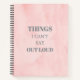 Ce carnet rose présente la puissante phrase "CHOSES I CAN'T SAY OUT LOUD" sur sa couverture, ce qui en fait l'endroit idéal pour capturer vos pensées, secrets et sentiments les plus profonds que vous trouvez difficile à express à haute voix. Son design minimaliste aux tons pastel doux vous invitation à écrire, réfléchir et explorer librement vos émotions dans un espace sûr. Idéal pour le journalisme, les réflexions personnelles, ou comme un cadeau réfléchi pour quelqu'un qui valorise l'expression de soi.