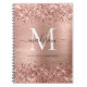 Blush Pink Rose Gold Glitter Sparkle Brushed Metal Girly Script Monogram Notebook