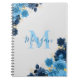 Ce carnet chic et élégant présente un bel arrière - plan gris mou aux tons sombres et moyens de roses bleus dans les coins opposés. Des accents de parties scintillant dorée brillent également parmi les fleurs. Vous le personnalisez avec votre nom et votre initiale avec le modèle facile à utiliser fourni.