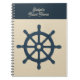Carnet roue de navire de marine avec nom beige Voyage côt