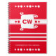 Carnet Rouge et blanc ajouter les initiales nom strié