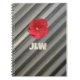 Carnet design audacieux avec fleur Hibiscus rouge et rayures monochromatiques modernes dans des tons gris foncé personnalisées avec des Initiales audacieuses est un style unique et sophistiqué pour votre Journaling et la tenue de notes. C'est une photographie botanique originale de JLW_Photography.