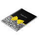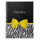 Un carnet noir et blanc à la mode de motif d'impression de zèbre avec un arc jaune mignon de ruban enveloppé comme un présent. Personnalisez cet ensemble chic conçu pour le fashionista en ajoutant votre nom. Image imprimée d'appartement, ruban non réel.