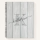 Maison de ferme moderne en bois de grange gris et blanc décoré chic carnet monogrammé avec une tendance rustique moderne initiale et joli script prénom ou nom de famille.