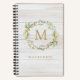 Rustic Wood Floral Watercolor Monogram Notebook. A dainty, boho watercolor wreath with your custom monogram and name in an elegant gold serif typography. This design features a warm, light wood rustic background.