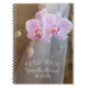 Le Carnet décontracté mais élégant Rustic Orchid Elegance Country Barn Mariage Guest Spiral peut être personnalisé avec les noms de la mariée et du marié et date pour créer un livre d'or pour les jeunes mariés pour leur mariage à la ferme rurale ou à la ferme. Ce livre de notes nuptiales customisé, informel et élégant, présente une photographie florale pittoresque de bois de grange brun, de fleurs d'orchidées de phalaenopsis rose et d'un voile de mariée blanche.