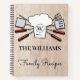 Le design a un arrière - plan en bois rustique avec un casquette chef et des ustensiles image à l'intérieur duquel vous avez votre monogramme familial. Vous pouvez personnaliser le design avec votre monogramme et votre nom de famille. Vous pouvez également modifier les recettes familiales et le texte du livre de cuisine selon votre souhait en cliquant sur personnaliser l'option. Vous pouvez organiser toutes vos recettes de famille préférées dans ce livre.