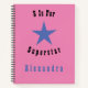 Une étoile bleu clair à cinq branches avec un texte personnalisable qui dit "S Is For Superstar". Tout le texte est personnalisable pour que le message et/ou le nom puissent être modifiés.