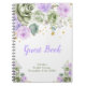 Beautiful bridal shower guest book with sage green and purple floral arrangements. Perfect for a bridal shower. The words can be changed to suit your own details or requirements