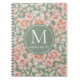 Carnet Sage Vert Floral Aquarelle Rose Motif Monogramme