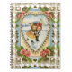 Un mignon, Fille et Garçon sont Patinage, bras et bras, sur un étang gelé. L'illustration est encadrée par un coeur, des fleurs roses et d'autres éléments décoratifs. Image d'une Saint-Valentin victorienne.