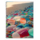 A sandy beach, surrounded by an assortment of colorful pebbles. The vibrant colors of the pebbles contrast with the neutral tones of the sand, creating a visually appealing scene. This image captures a moment that highlights nature's beauty and creativity.