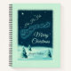 Carnet spiral personnalisé avec une illustration vintage de Père Noël dans son traîneau tiré par ses rennes. De petites étoiles arrosent le ciel nocturne. Des pins couverts de neige au sol. Vintage esprit rétro.