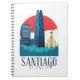 C'est une magnifique oeuvre de voyage de Santiago de Chile Vintage Skyline sur un Carnet Spiral avec tous les célèbres bâtiments et monuments de la capitale chilienne. Achetez maintenant pour votre famille et vos proches. Bonne idée cadeau à Noël ou Anniversaire.