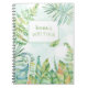 Vous penserez aux îles tropicales et aux plages ! De jolis aquas et des verts doux dans ce design d'aquarelle tropicale rendent l'écriture inspirée. Ajoutez un nom et une description de ce que sera le carnet : journal, planificateur, journal, notes, idées.